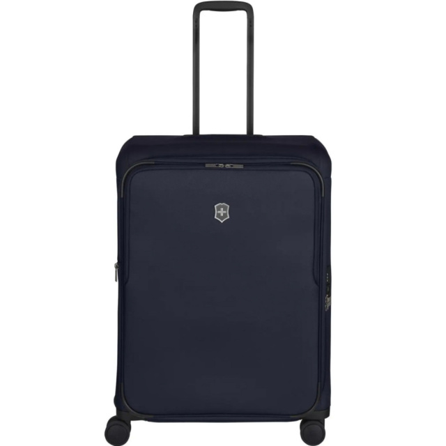 Victorinox Travel CONNEX SS Large (Navy Blue) – велика нейлонова валіза на 96-106 л з розширенням та передньою кишенею на блискавці для швидкого доступу до квитків, книги або куртки. Висококласний та неймовірно місткий багаж, з яким ви зможете вирушити і в тривалу подорож, і у відпустку з дітьми.